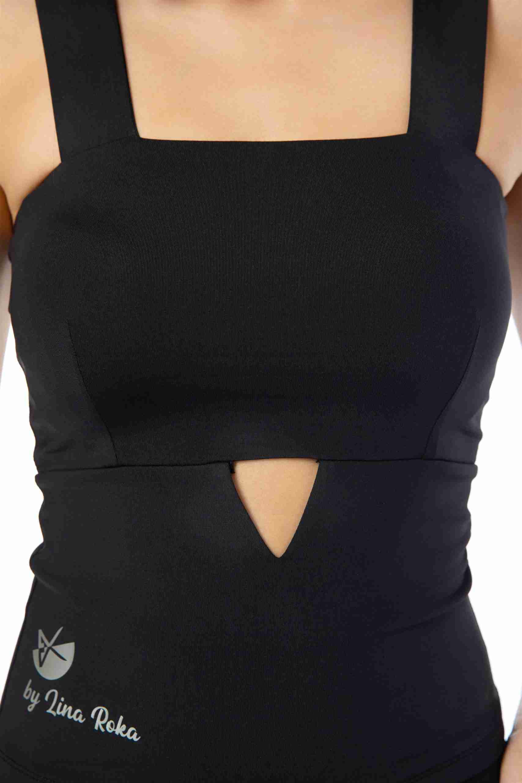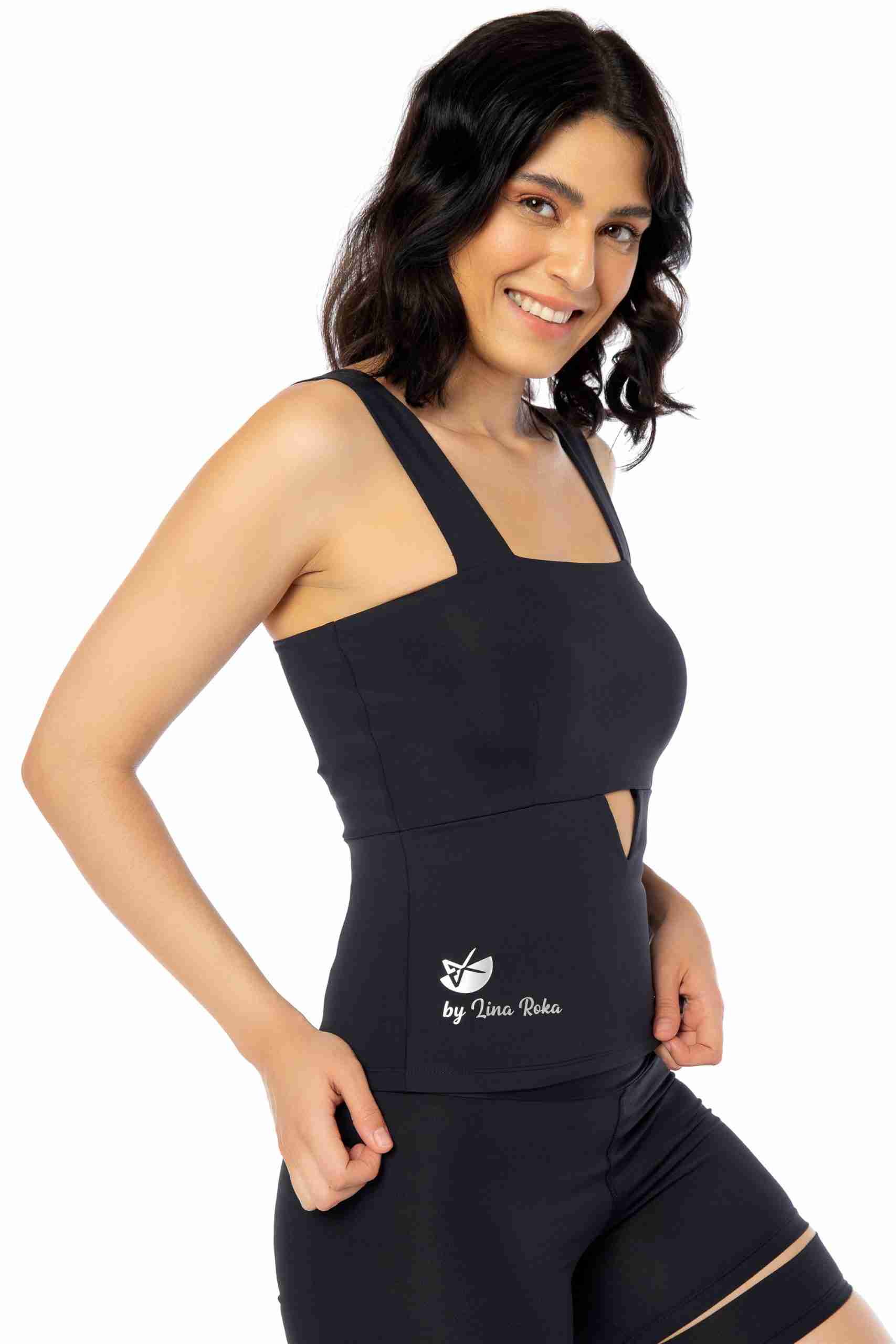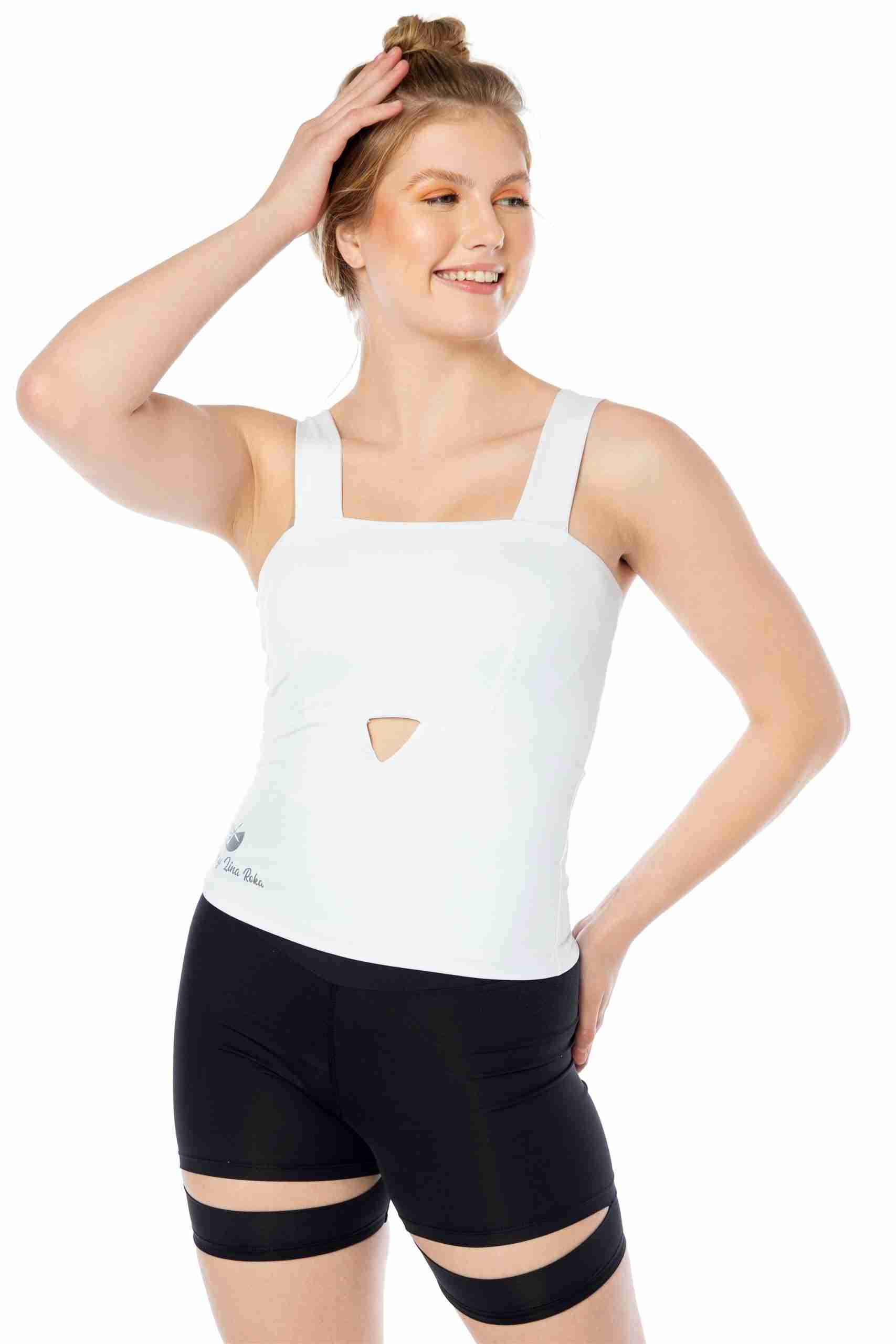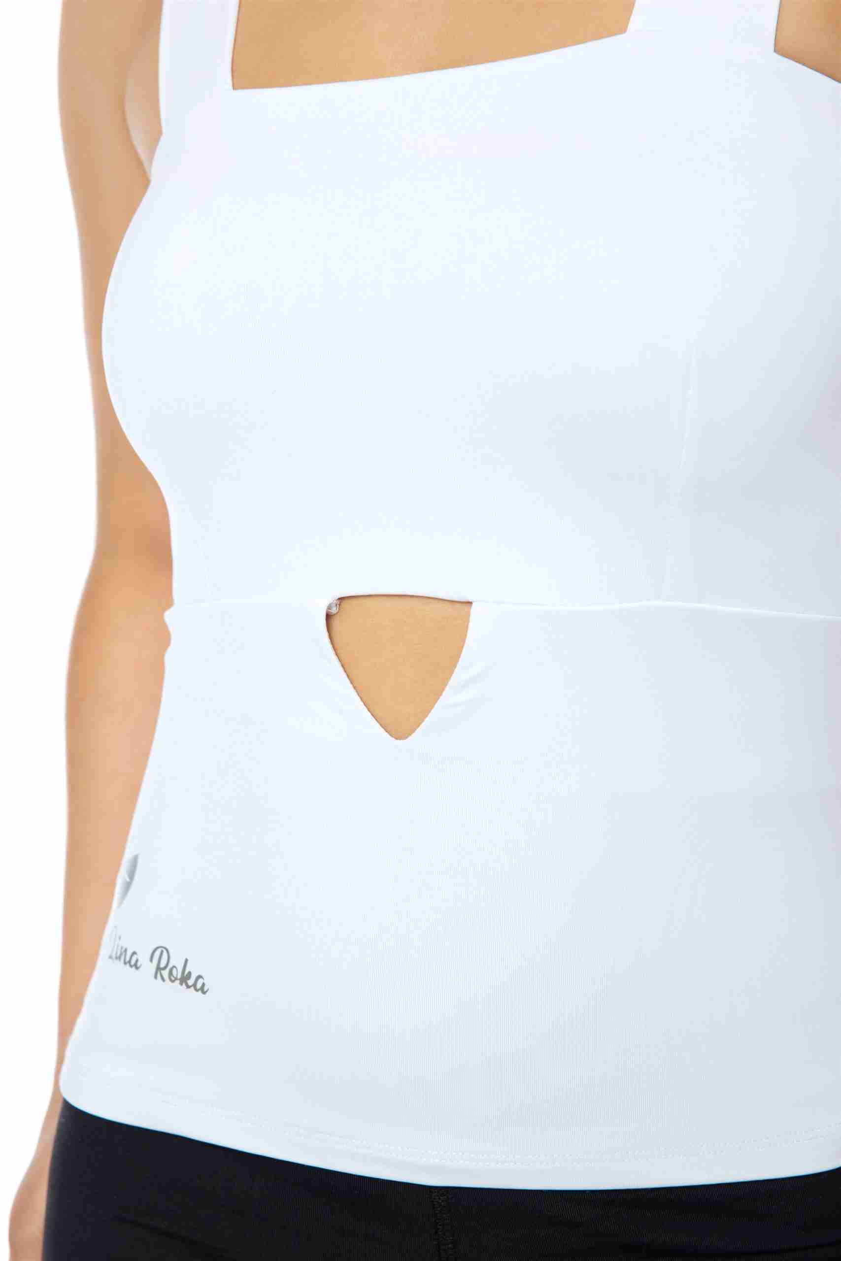 TOP DE TIRANTES ORGÁNICO PARA MUJER: Nuestro top deportivo orgánico para mujer cuenta con una elegante abertura en la parte delantera debajo del pecho, ofreciendo un diseño moderno y favorecedor que deja parte de la piel al aire. Los tirantes permiten libertad de movimiento en los brazos.