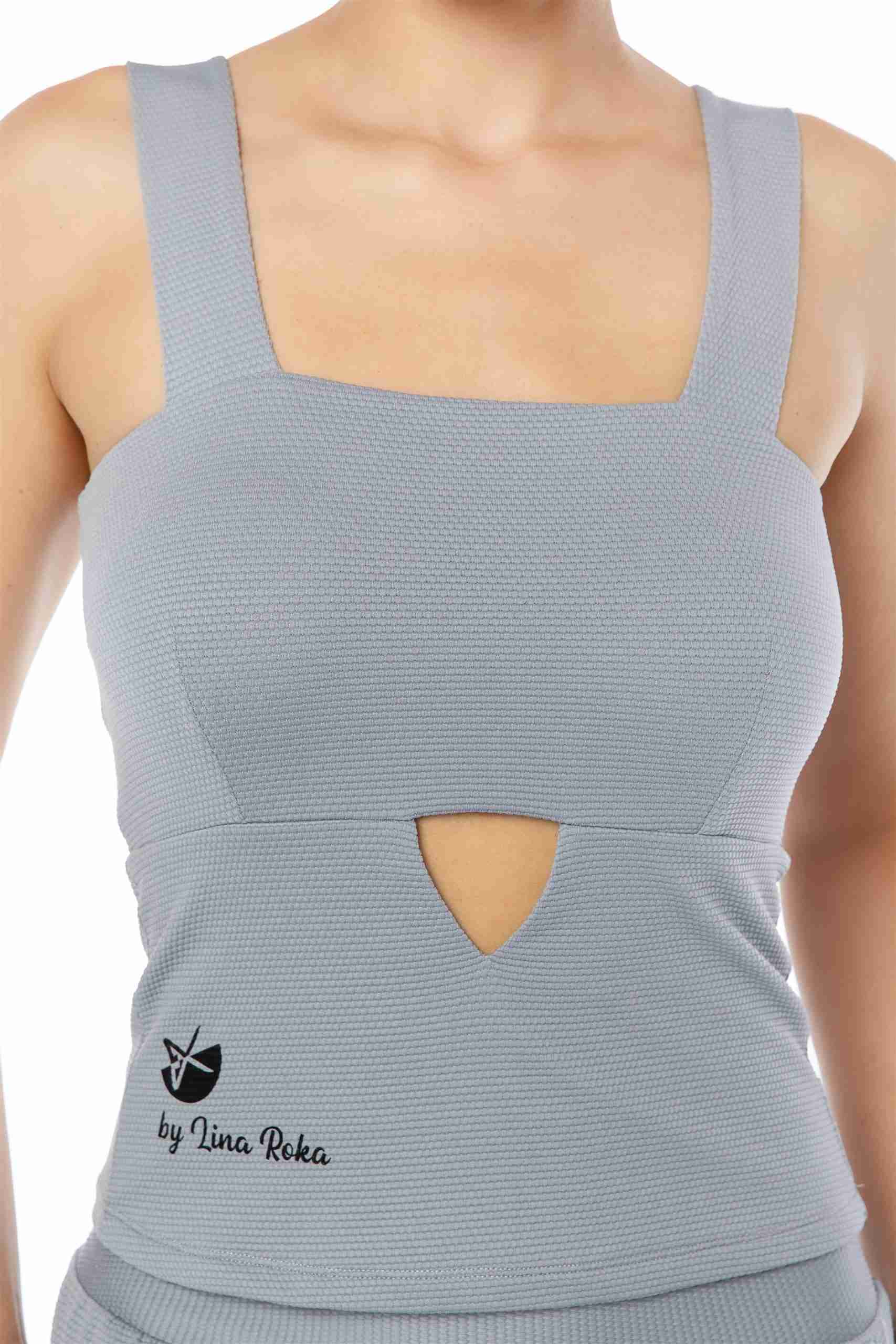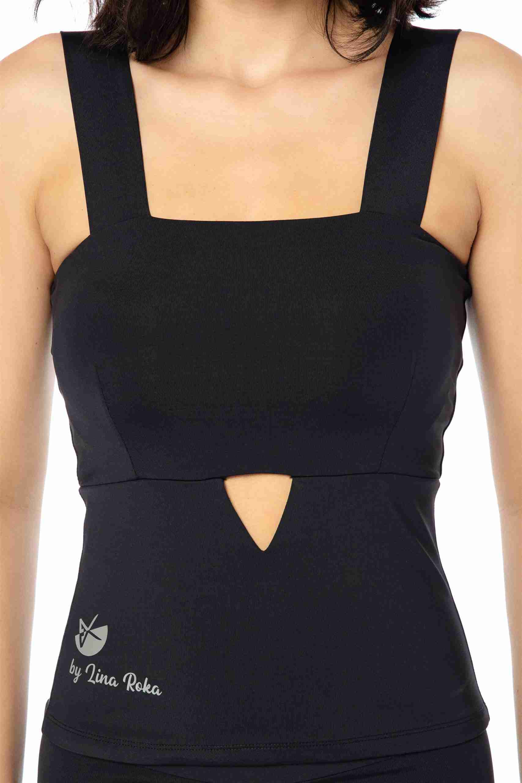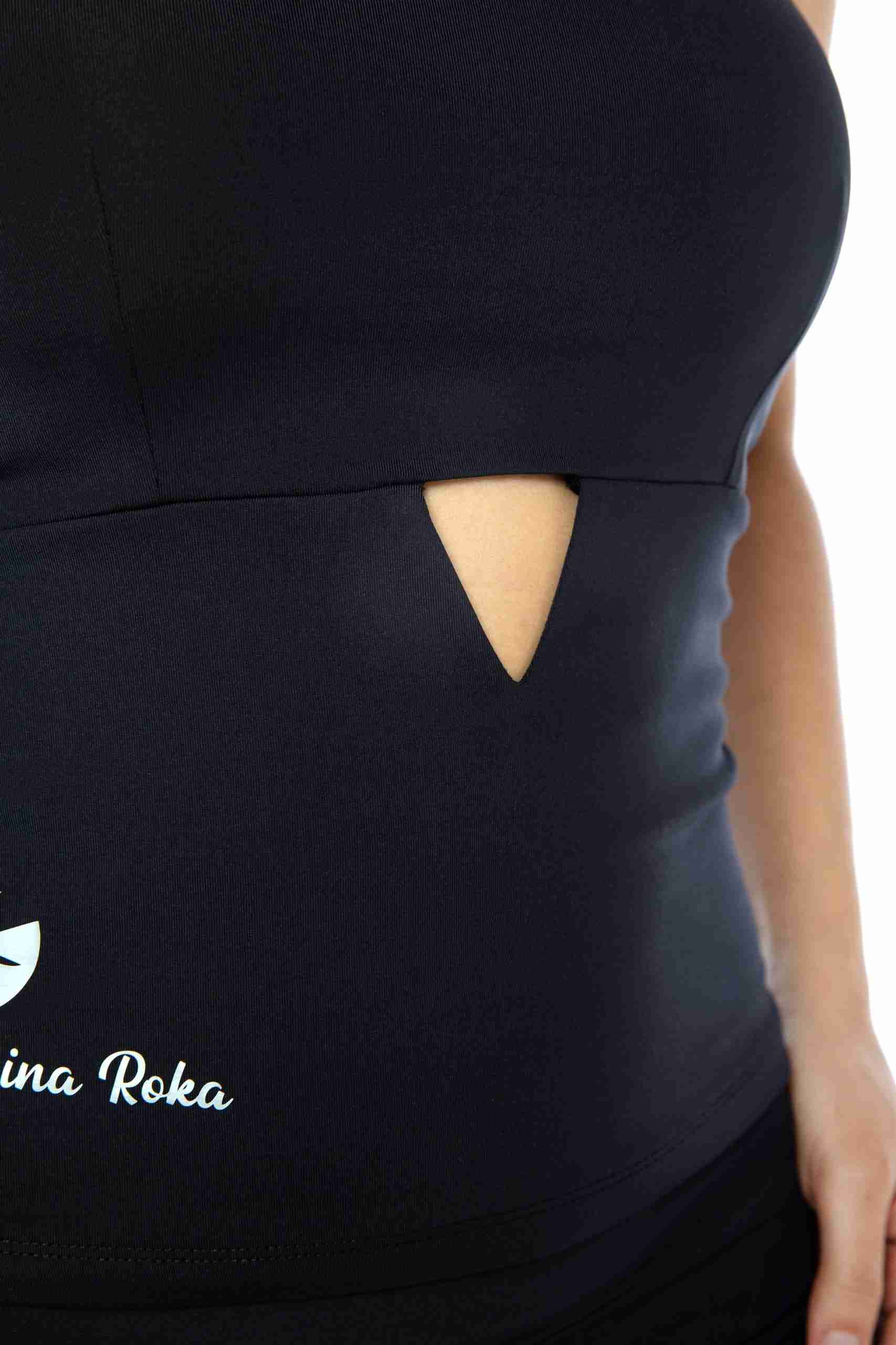 TOP DE TIRANTES ORGÁNICO PARA MUJER: Nuestro top deportivo orgánico para mujer cuenta con una elegante abertura en la parte delantera debajo del pecho, ofreciendo un diseño moderno y favorecedor que deja parte de la piel al aire. Los tirantes permiten libertad de movimiento en los brazos.