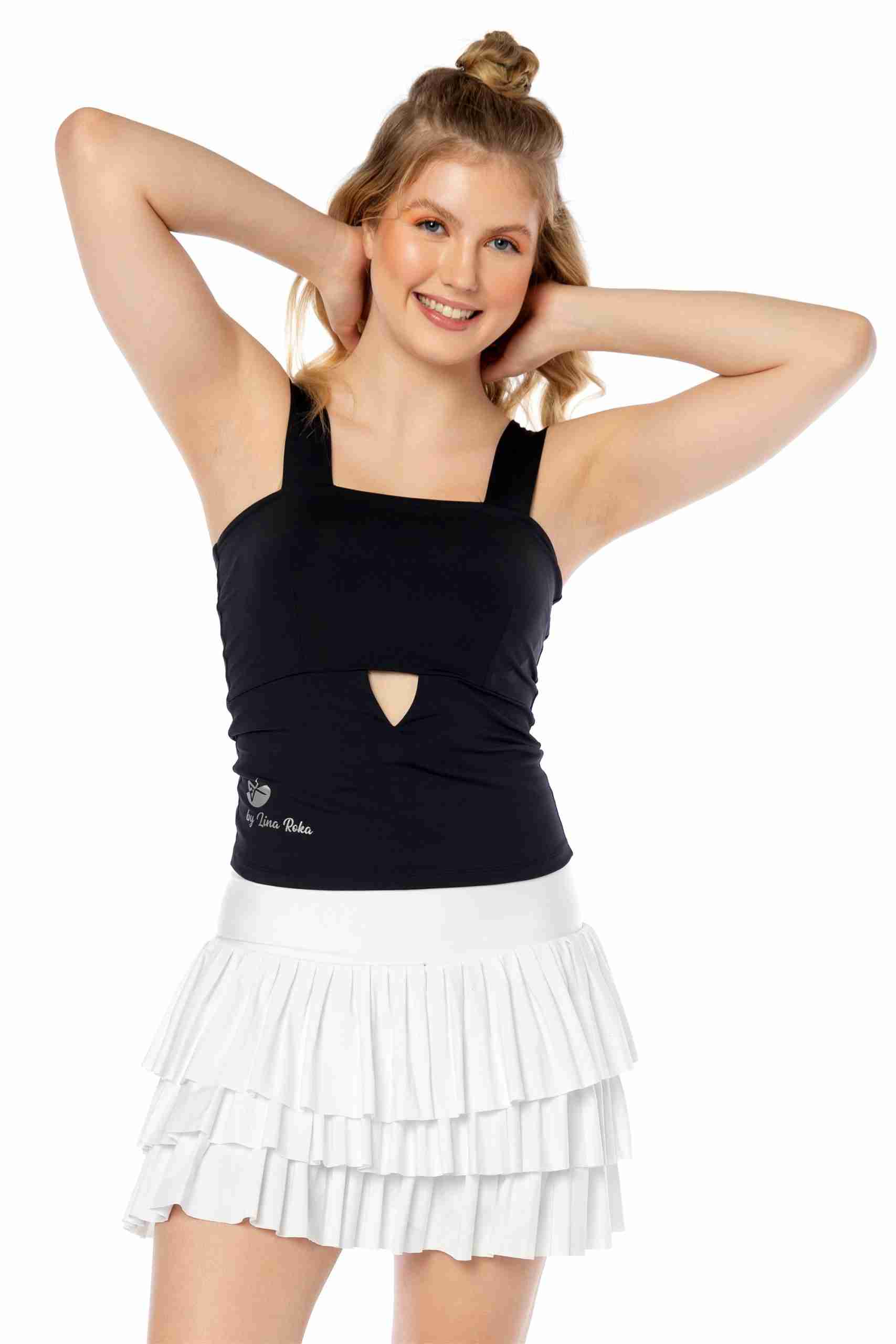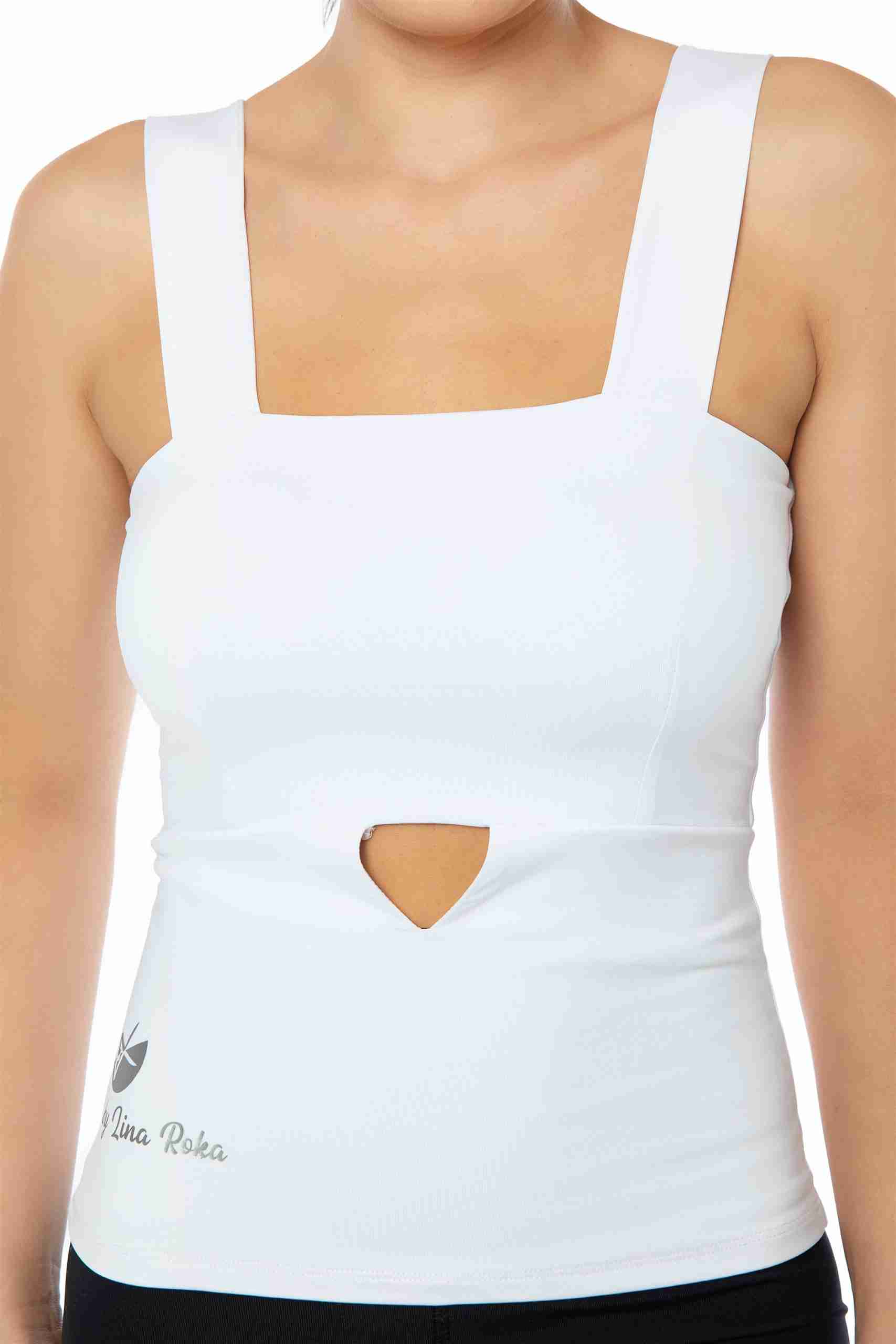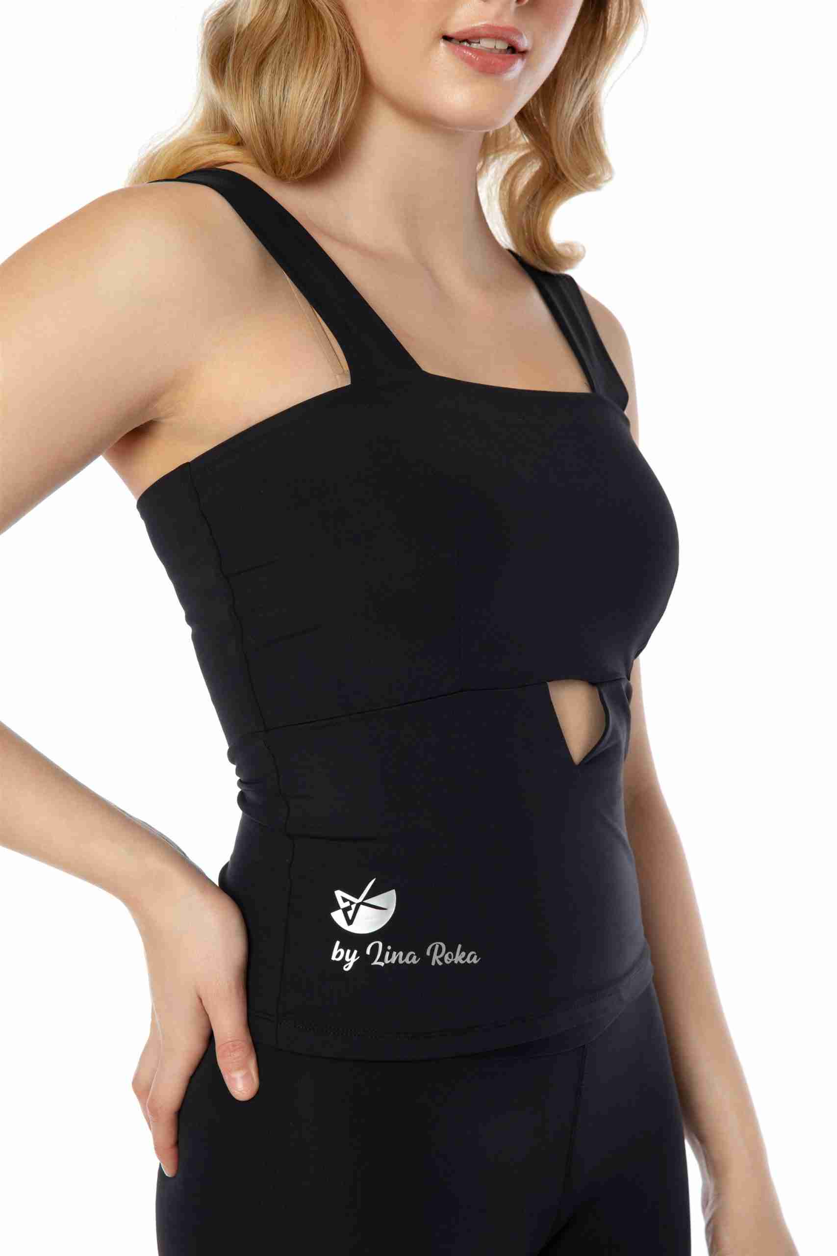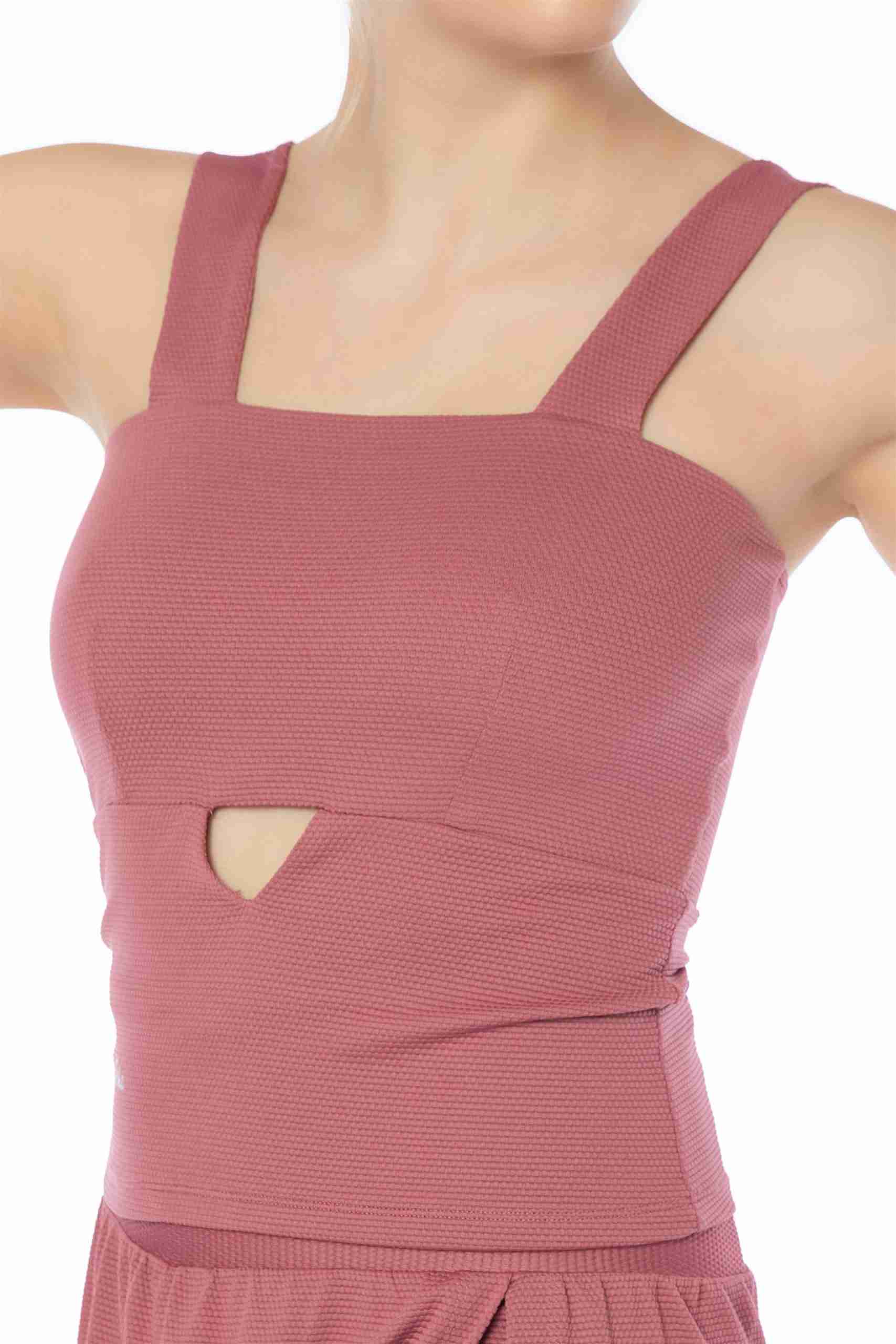TOP DE TIRANTES ORGÁNICO PARA MUJER: Nuestro top deportivo orgánico para mujer cuenta con una elegante abertura en la parte delantera debajo del pecho, ofreciendo un diseño moderno y favorecedor que deja parte de la piel al aire. Los tirantes permiten libertad de movimiento en los brazos.