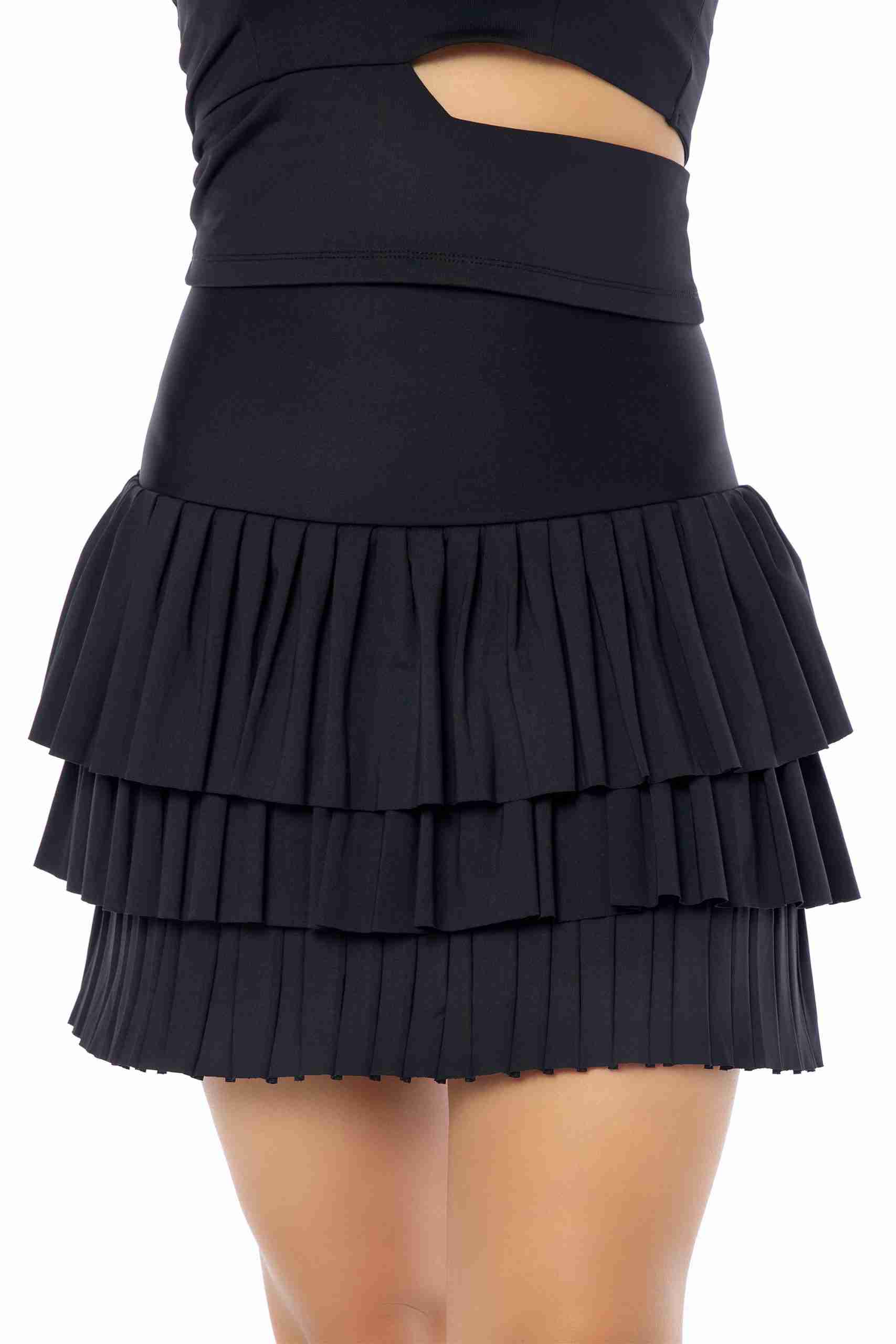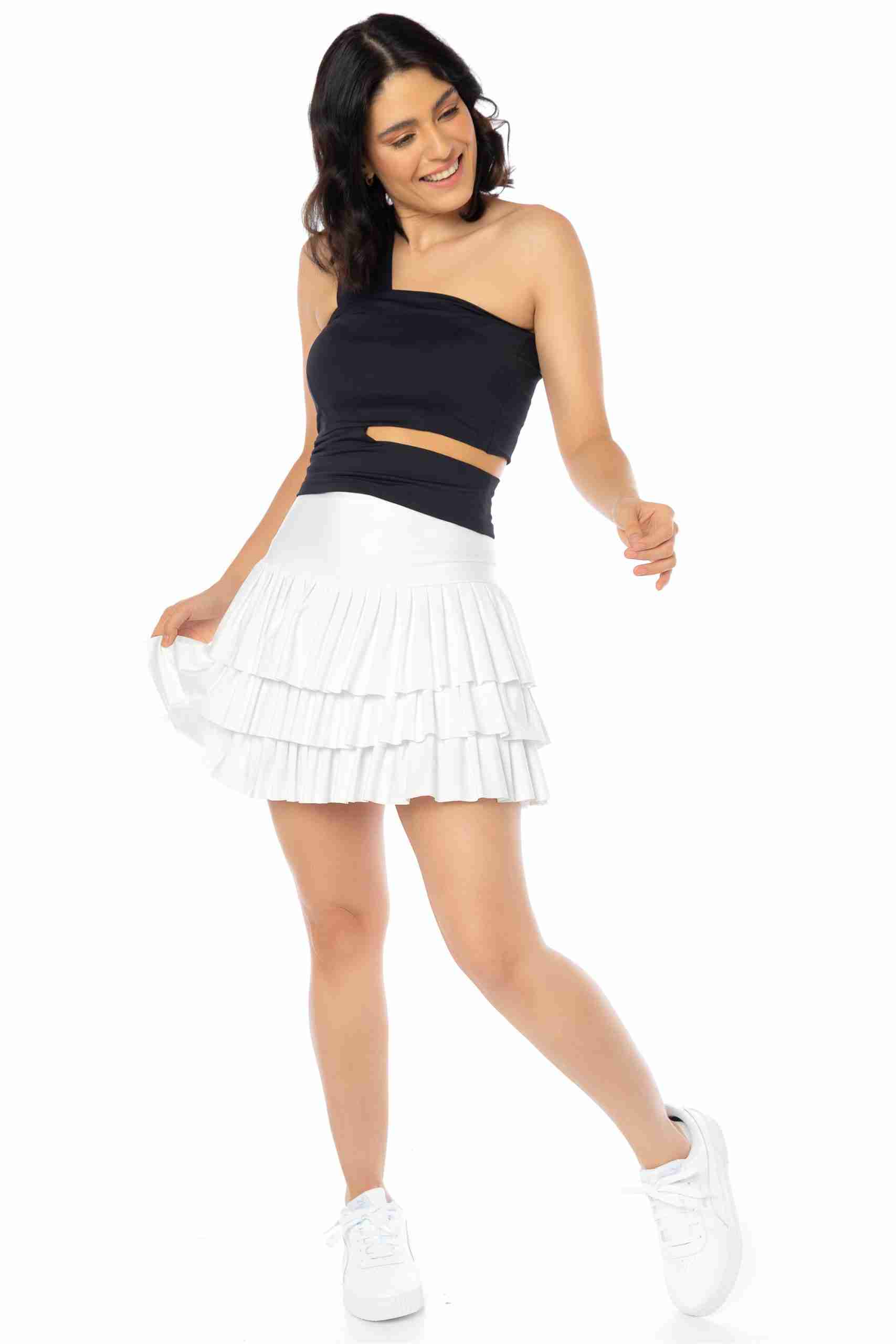 FALDA DE PÁDEL PARA MUJER: Nuestra falda deportiva para mujer cuenta con un diseño desenfadado gracias a sus tres capas de plisado. La cintura alta estiliza la figura y ofrece un ajuste estable.