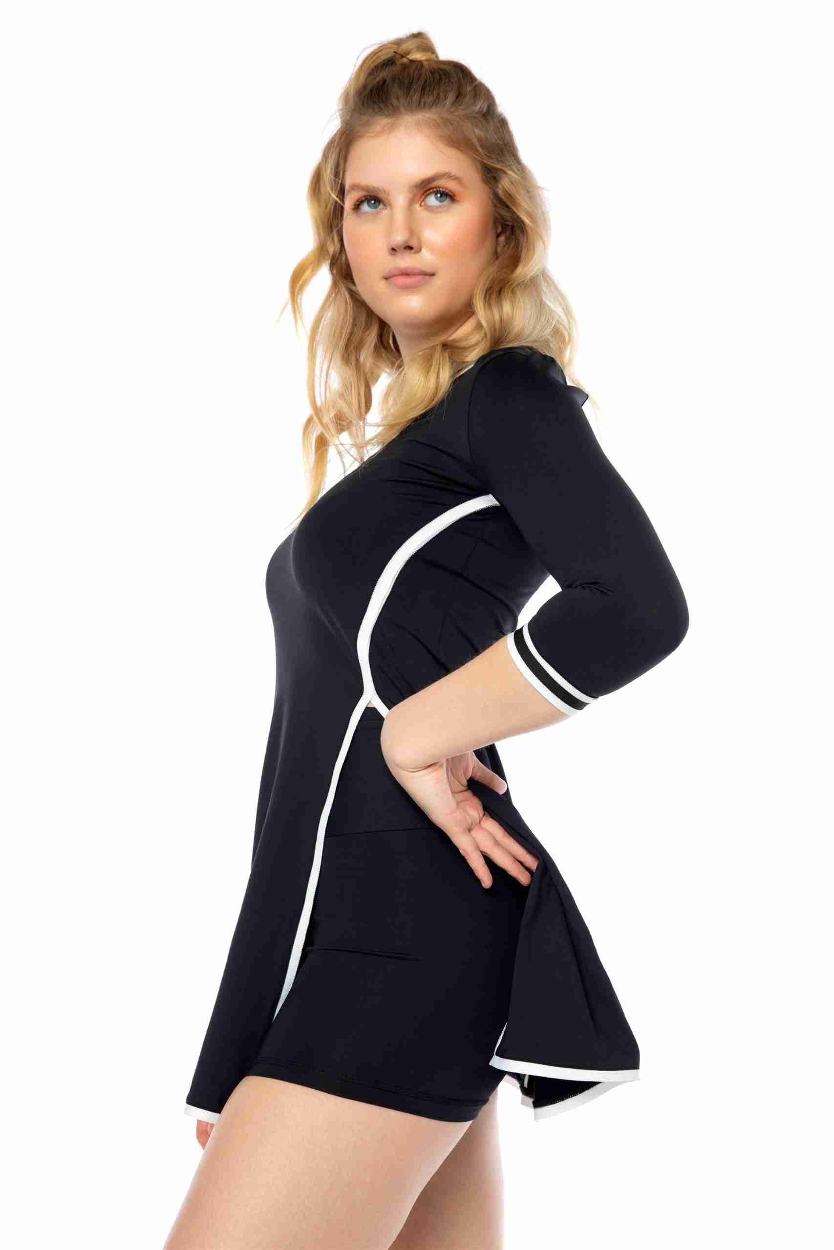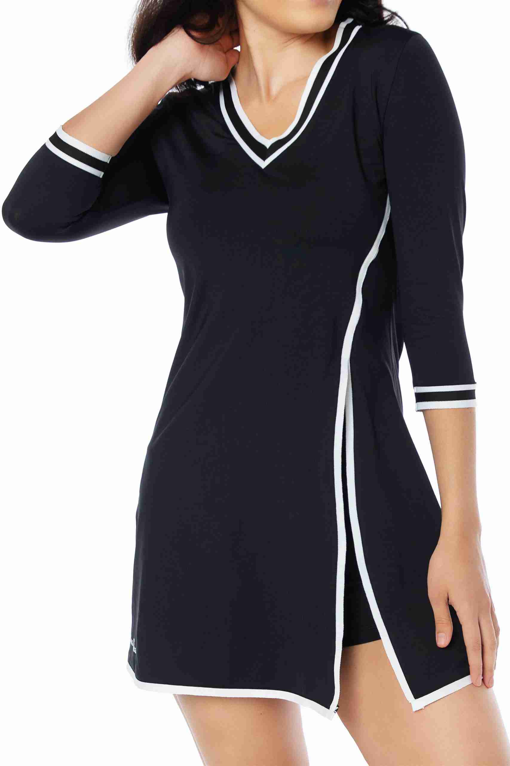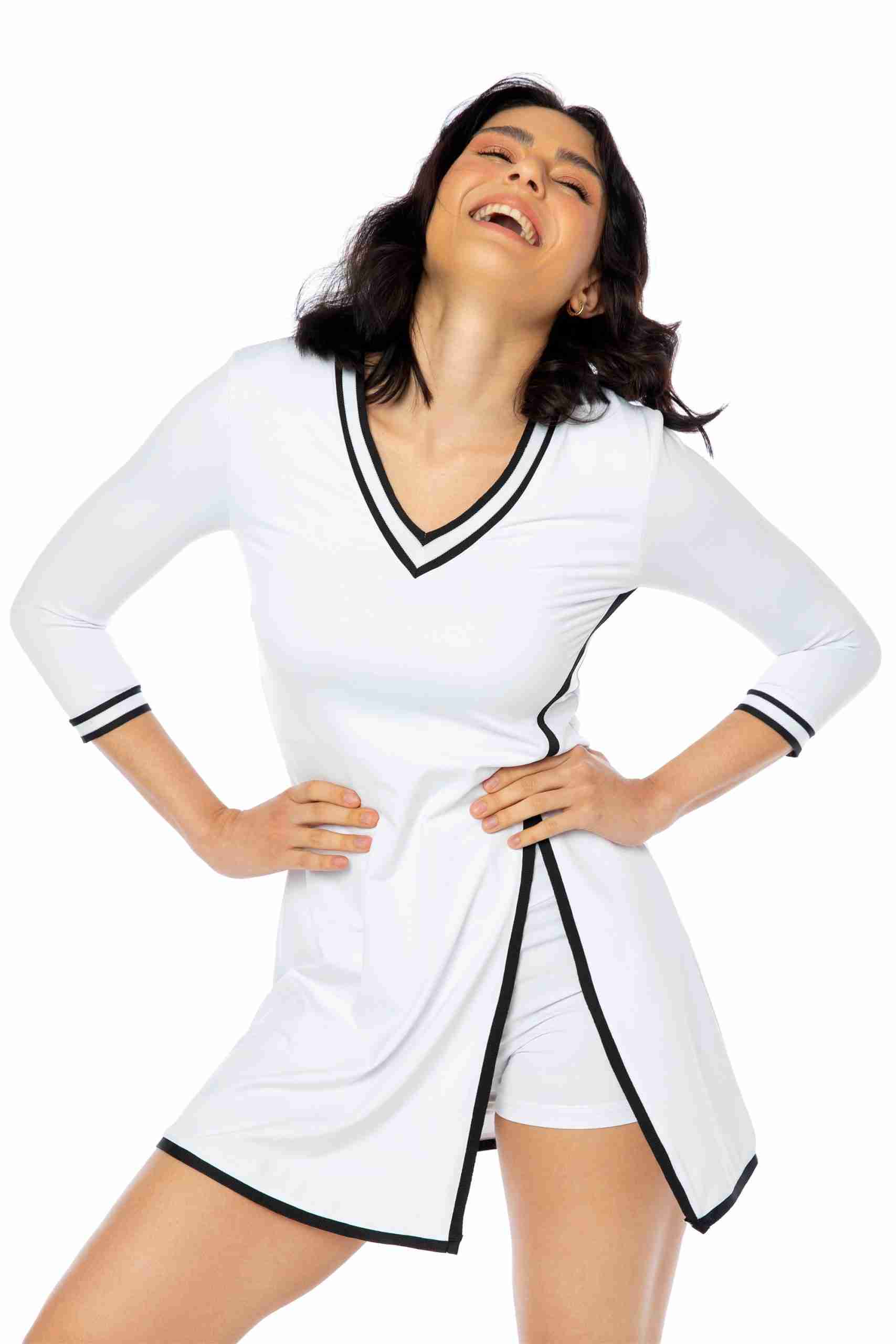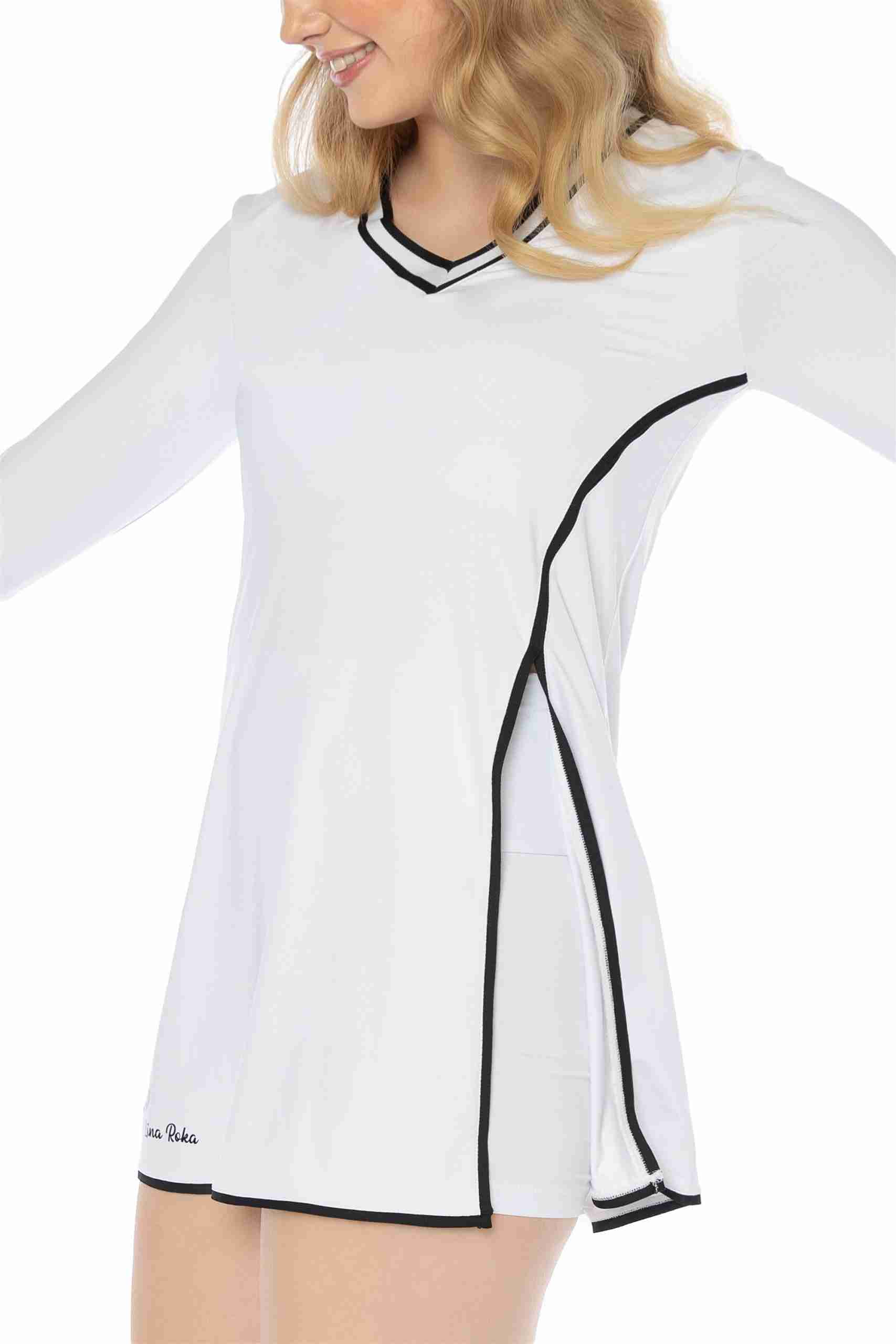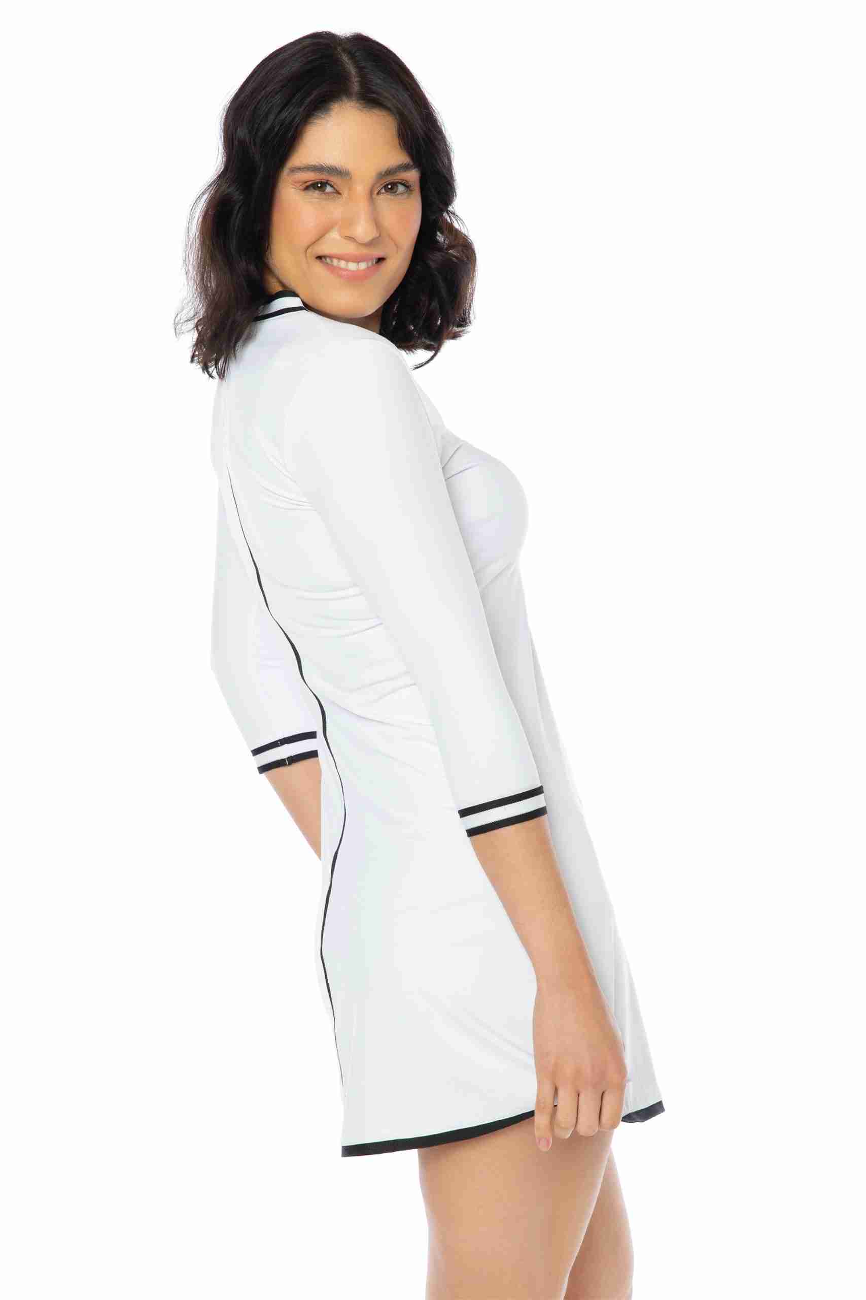 Vestido deportivo para mujer: Nuestro vestido tenis para mujer tiene mangas de tres cuartos y un pantalón corto con bolsillo trasero, perfecto para guardar pelotas o el móvil. Su diseño sofisticado agregará elegancia a tu look deportivo. Tejido cómodo: Fabricado en un 86% de poliamida y 14% de elastano, este vestido se adapta a tu cuerpo y te permite moverte con total libertad. Las costuras suaves evitan rozaduras durante la práctica deportiva. ¡Adiós al sudor!: El tejido transpirable permite la ventilación y evaporación del sudor, manteniéndote fresca por más tiempo y evitando olores desagradables. Practica tus deportes favoritos: Este vestido y short deportivo de mujer son ideales para actividades como tenis, pádel, golf e incluso meditación y yoga. Su diseño y material los convierten en tus aliados perfectos. By Lina Roka: Nuestra marca se destaca por ofrecer ropa deportiva femenina que combina estilo y comodidad. Practica tus deportes favoritos con prendas que te hacen sentir bien y con ese toque de estilo que te encanta.